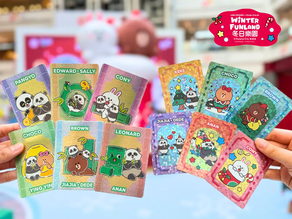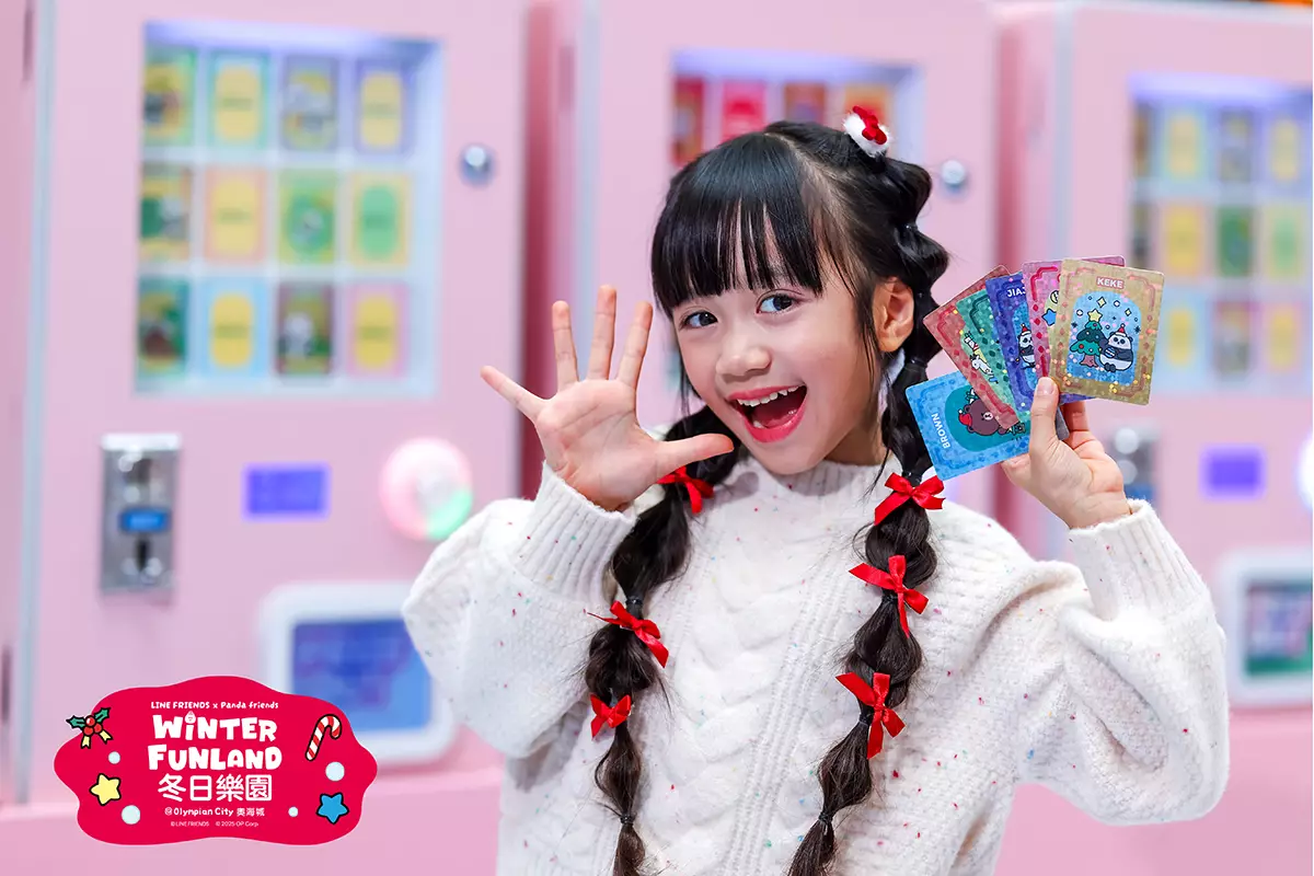 想將可愛的 LINE FRIENDS 朋友仔與 Panda Friends 帶回家?場內特設夾公仔機,滿載可愛驚喜,參加者只需投入遊戲幣,操控機械爪挑戰眼界與手感,即有機會把心愛角色公仔帶回家,或者從 LINE FRIENDS x Panda Friends 收藏小卡販賣機中隨機抽中一款 (共12 款),為今個冬日增添一份專屬甜蜜回憶!