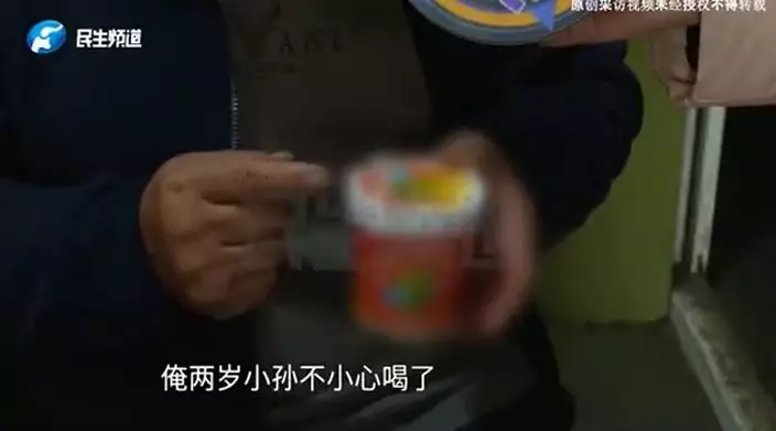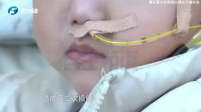 河南2歲童誤服強鹼清潔劑,祖母灌水急救反致食道腐爛。微博影片截圖