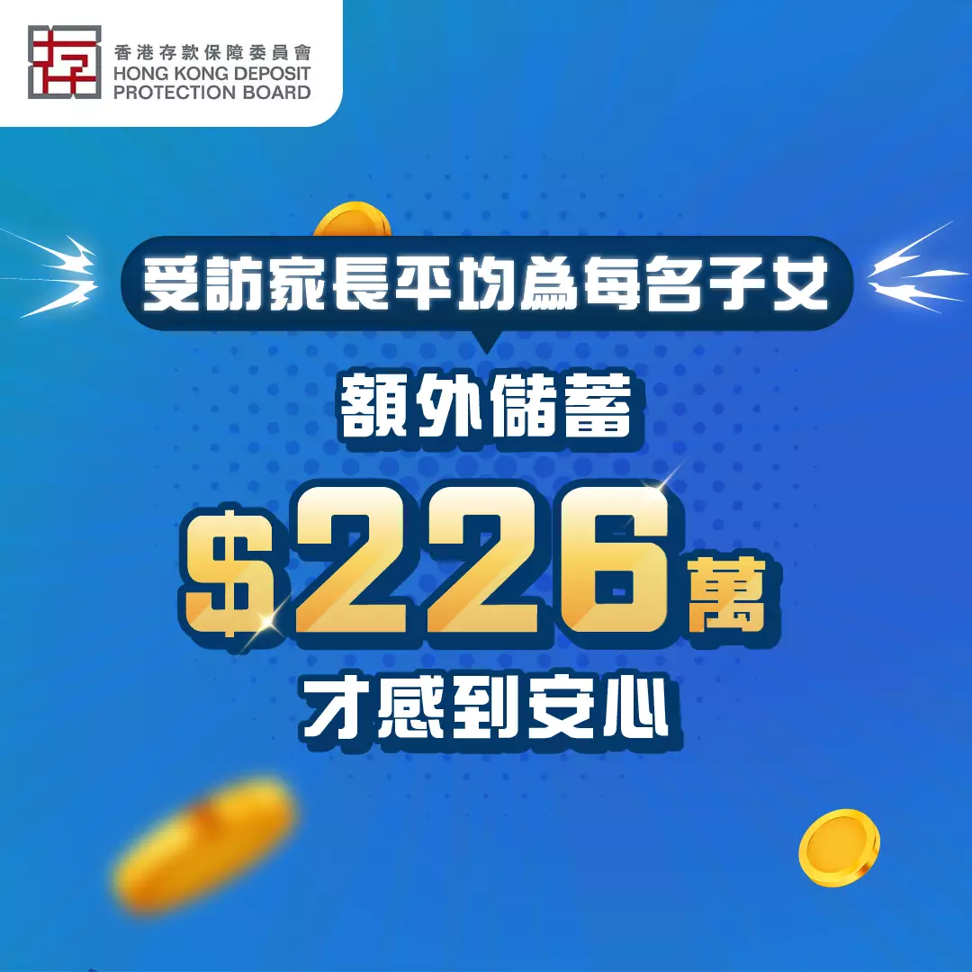 存保會亦訪問了301名育有至少一名10歲或以下子女的家長,發現有儲蓄習慣的家長比例接近80%,較2020年進行的同類型調查增加約3個百分點,每名家長每月平均儲蓄12100元,較5年前大幅增加逾40%。