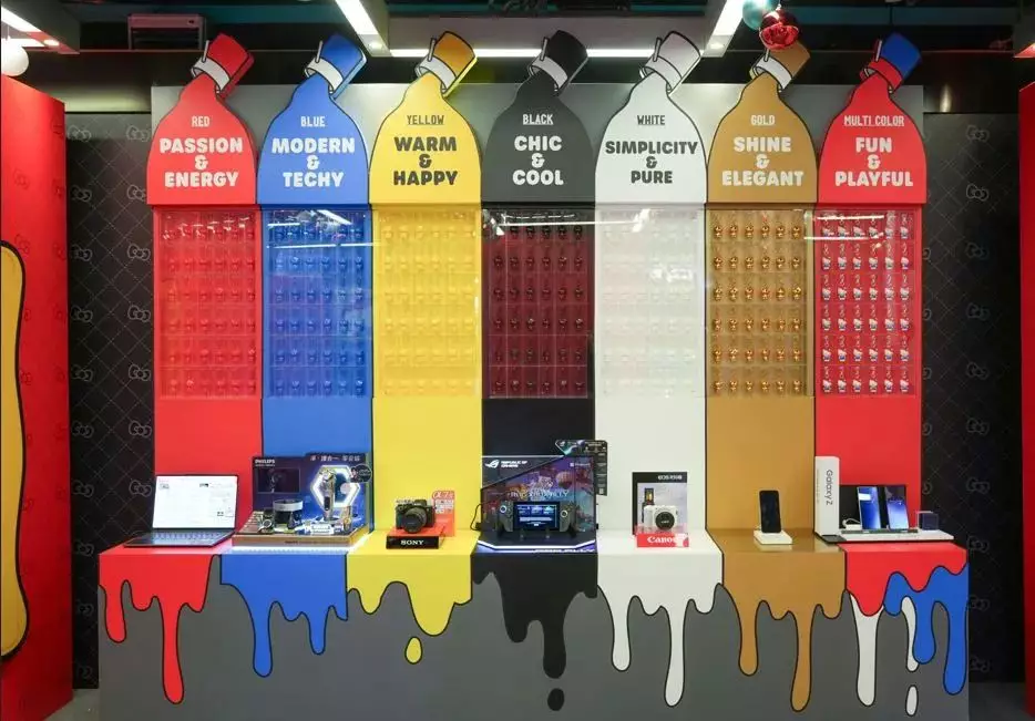 另一大焦點為以紅、藍、黃及黑四色呈現的同色系 HELLO KITTY 色彩牆,由四款單色 HELLO KITTY 配合相應色調的背景設計,鮮明繽紛的色彩美學貫穿整個場景,完美展現「LIVE EVERY COLOUR」的主題概念。HELLO KITTY 粉絲絕對不容錯過!
