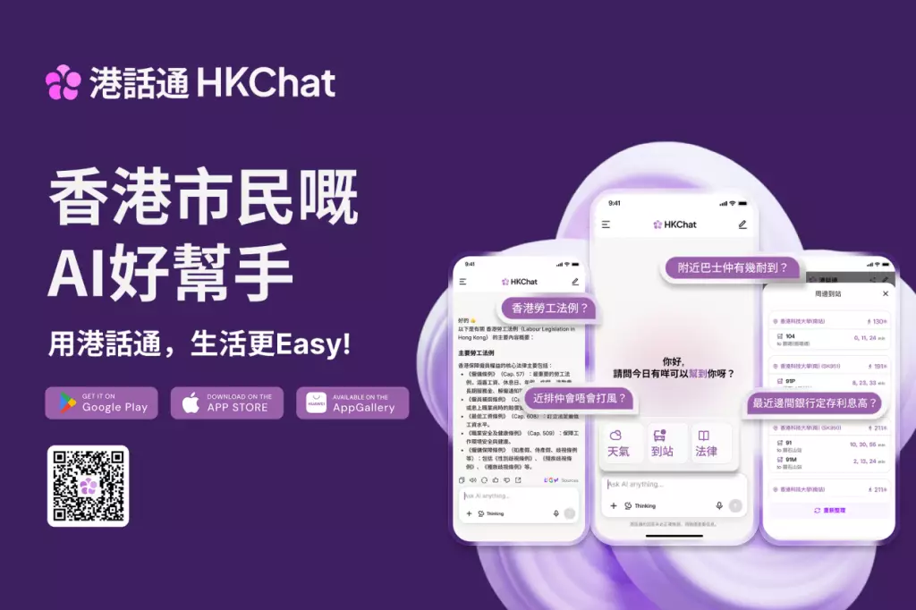 「港話通」試行版以「香港市民嘅AI好幫手」為使命,支援廣東話、普通話及英語三語混合對話,深度融合香港本地生活場景,應用程式不僅接入政府公開數據庫,提供即時交通、政策、天氣及公共服務資訊,更與本地學術機構合作,共建專屬知識庫,涵蓋街坊美食、店舖優惠、社福政策等多元領域,致力為用戶提供貼心實用的智能服務。