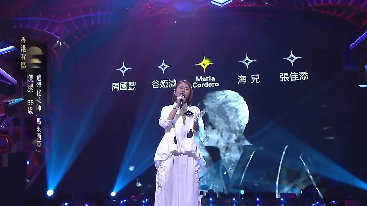 另一名值得留意的參賽者,還有現年39歲、來自馬來西亞的遺體化妝師陳潔。雖然陳潔未夠40歲,但她透露明年便會榮升婆婆!並謂參賽目的是想把舞台留給家人:「我諗住將今次上到電視呢一幕畀之後嘅孫睇,同埋我嘅婆婆都好老喇,我想畀佢睇吓我喺台上唱歌。」到底陳潔最終能否如願,為家人留下更多別具紀念價值的舞台?密切留意節目!