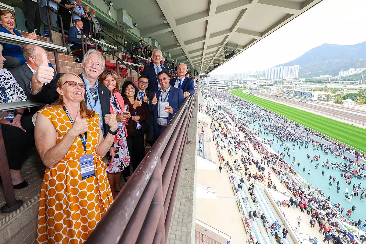 與會代表及講者於會議前夕親臨馬會舉辦的「2025浪琴香港國際賽事」,近距離感受世界級賽事現場氣氛,加深與會者對賽馬運動的認識。