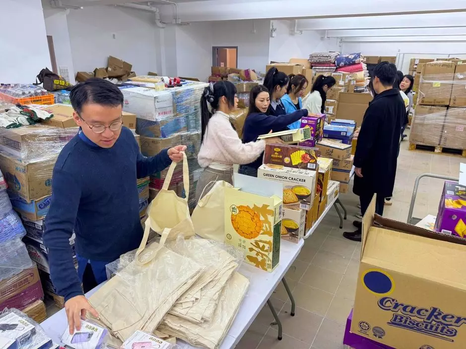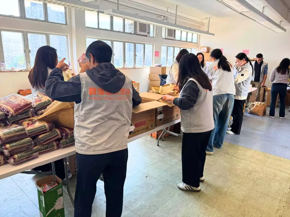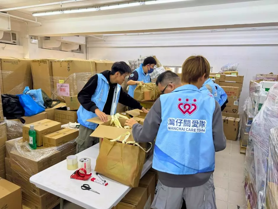 關愛隊、「連青人網絡」成員及YDC見習青年大使合力把社會各界捐贈予宏福苑災民的部分物資,製成2000個福袋,將陸續送到災民手中,盼望向災民傳遞善心市民和機構的祝福和關懷。