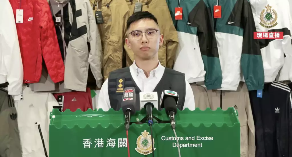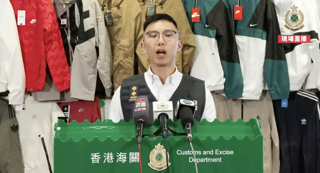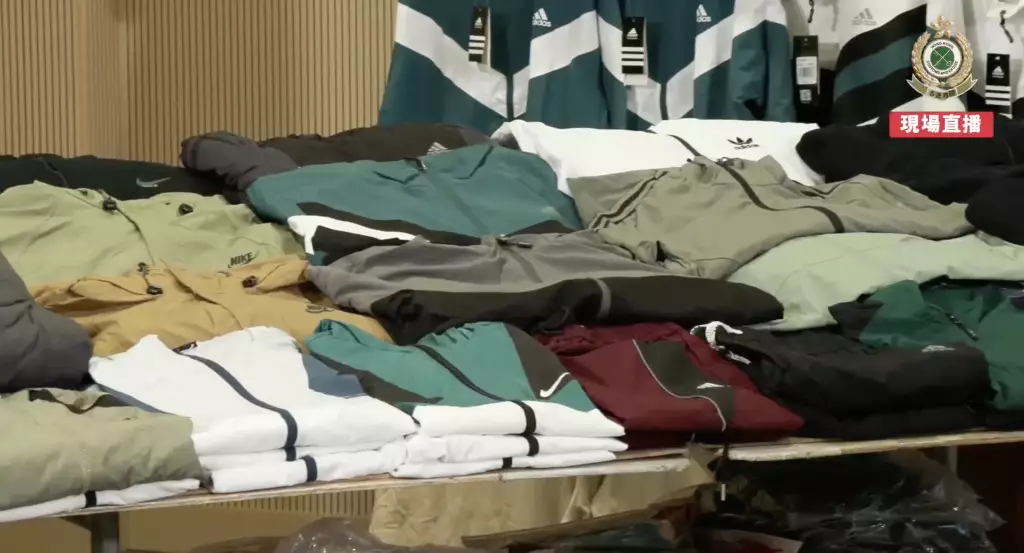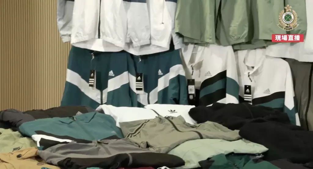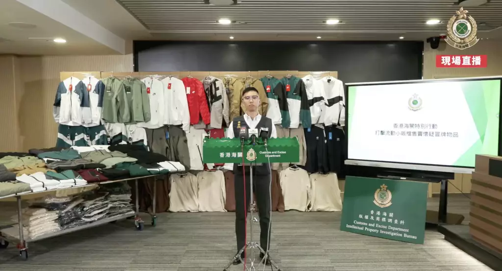 海關早前發現有流動小販於啟德售賣懷疑冒牌物品。經深入調查後,海關人員於12月16日採取執法行動,於啟德掃蕩一個流動小販攤檔及其設於葵涌的貯存倉庫,並檢獲該批懷疑冒牌衣物。