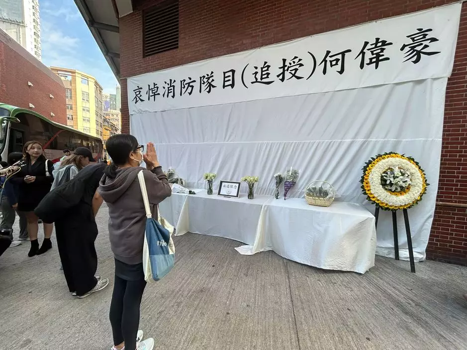 在開放給公眾進行悼念的區域,一早陸續有市民前來獻花追悼,希望可以盡自己的一份心意,送何偉豪最後一程。有市民在獻完花束後,忍不住落淚,難掩心中悲痛。其中王小姐對何偉豪的殉職感到很心痛,她感謝所有消防員的英勇付出,又稱自己是四孩的母親,明白要養大子女不容易,她希望政府可以為消防加添設備。