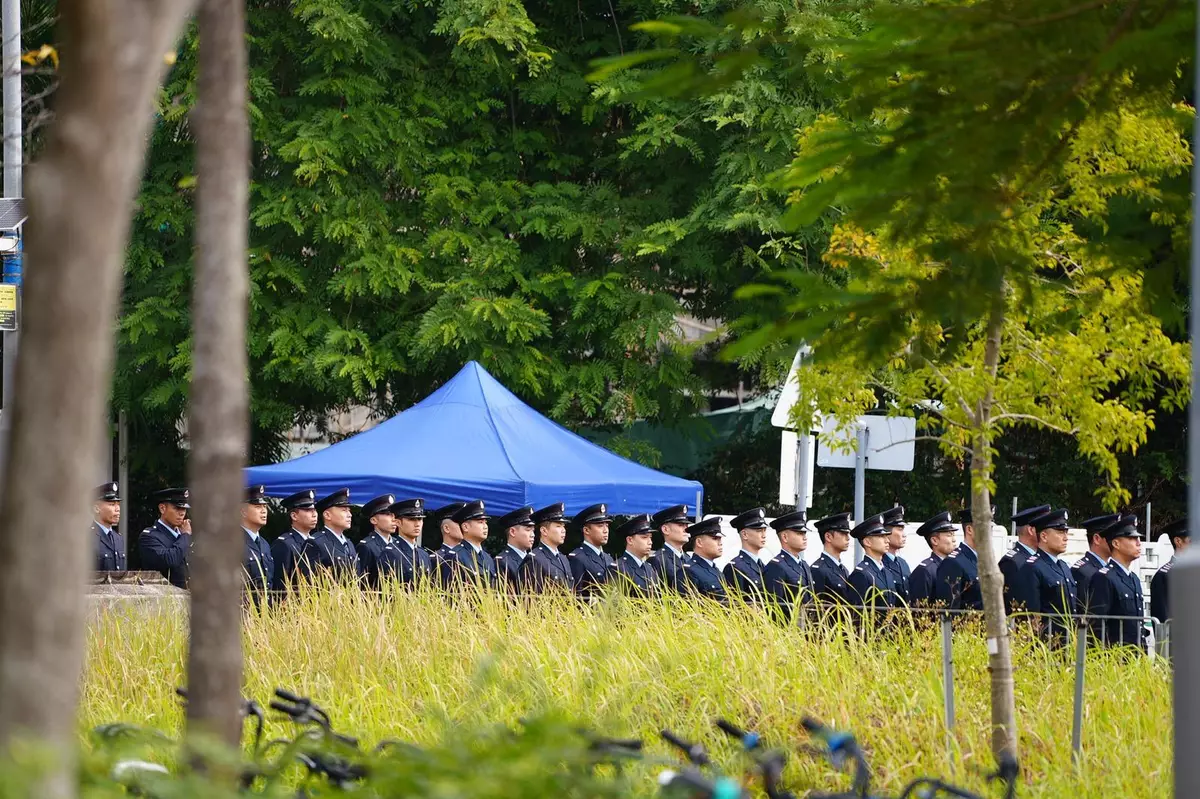 何偉豪靈車在宏福苑舉行路祭,警務處新界北總區指揮官助理處長林敏嫻致意。巴士的報記者攝