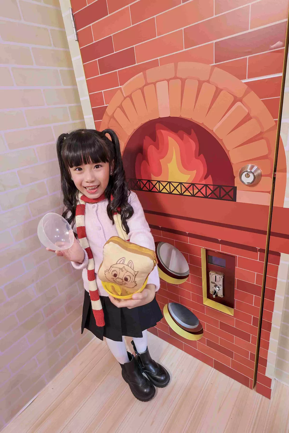 Step 2 | 扭出角色麵包公仔: 從限定扭蛋機中隨機獲得 Chip 'n' Dale 角色造型麵包,象徵甜點派對的第一份收穫。