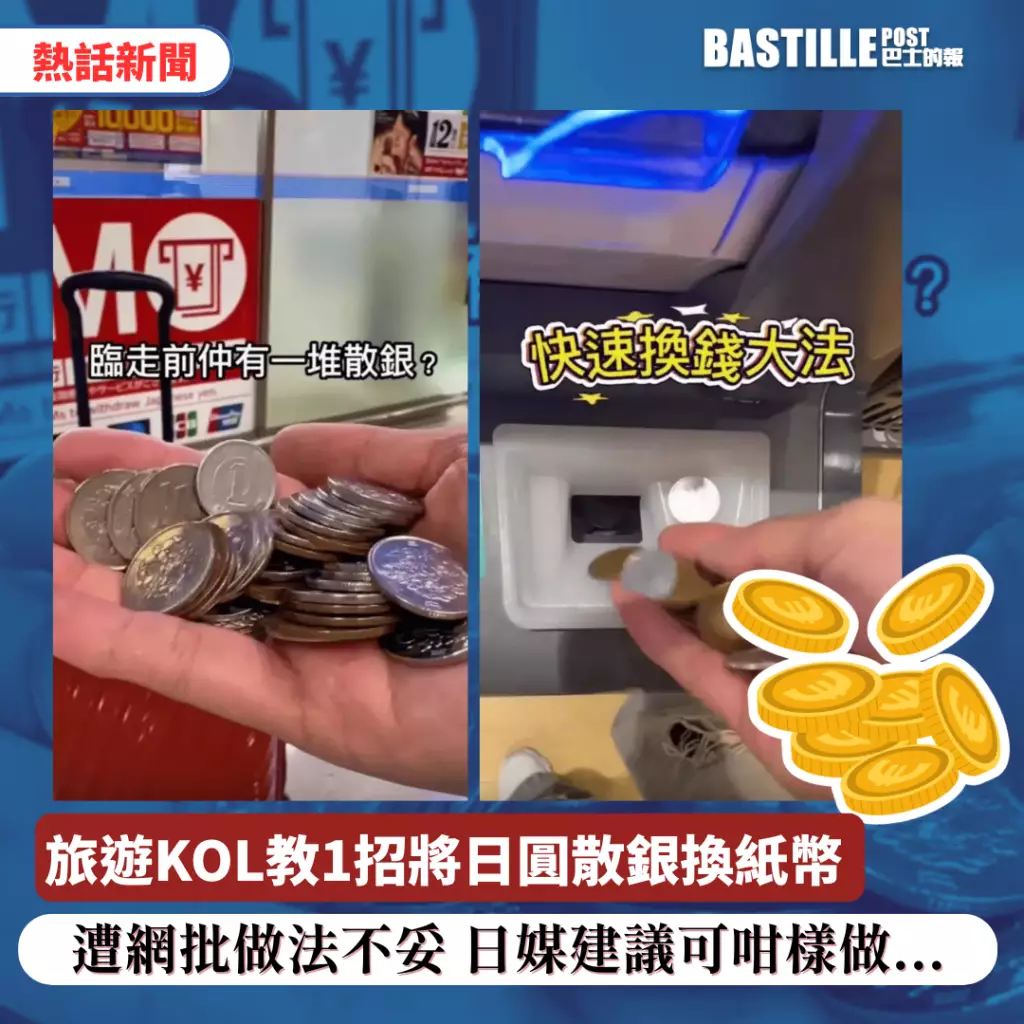日本向來是港人熱門的旅遊勝地,但每次遊日後少不免會留下一些日元硬幣,不知如何處理。早前就有一些旅遊KOL拍片分享一個將硬幣換成紙幣的大法,不過卻引來網民批評,指方法欠缺妥當。