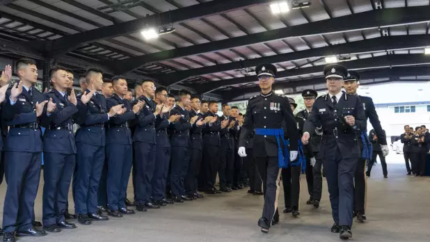 警察學院舉行結業會操,由警務處副處長葉雲龍擔任檢閱官,共有34名見習督察及187名學警結業。