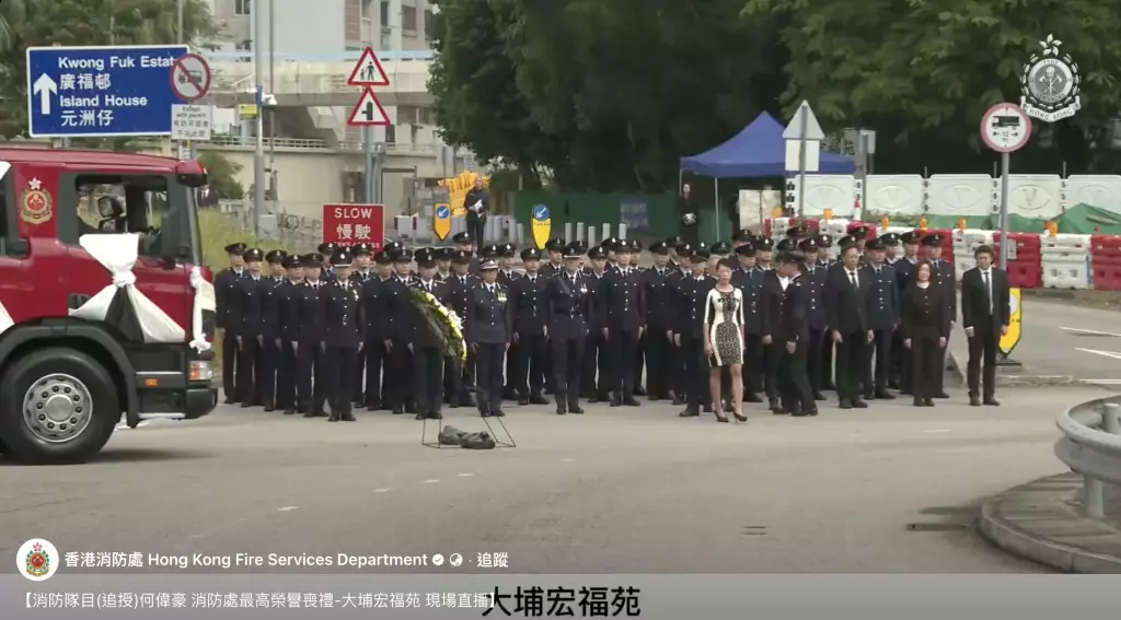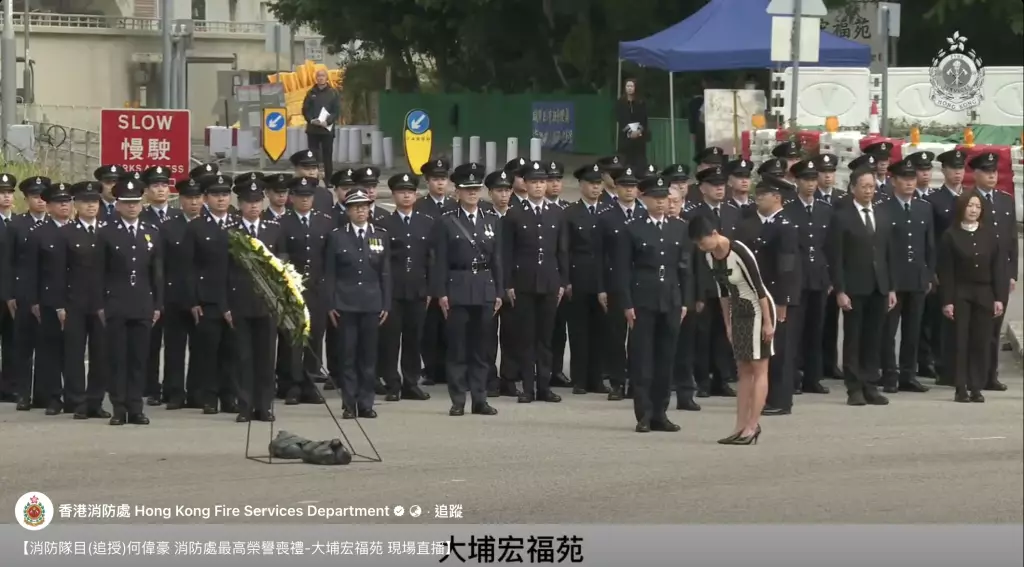 消防處為大埔宏福苑火災殉職消防隊目(追授)何偉豪星期五舉行最高榮譽喪禮,先後到火場及沙田消防局舉行路祭。民政事務總署表示,大埔民政專員和團隊一直盡心盡力處理善後工作,但於星期五的路祭儀式上的衣着選擇引起大家關注,大埔民政專員陳巧敏由衷致歉。