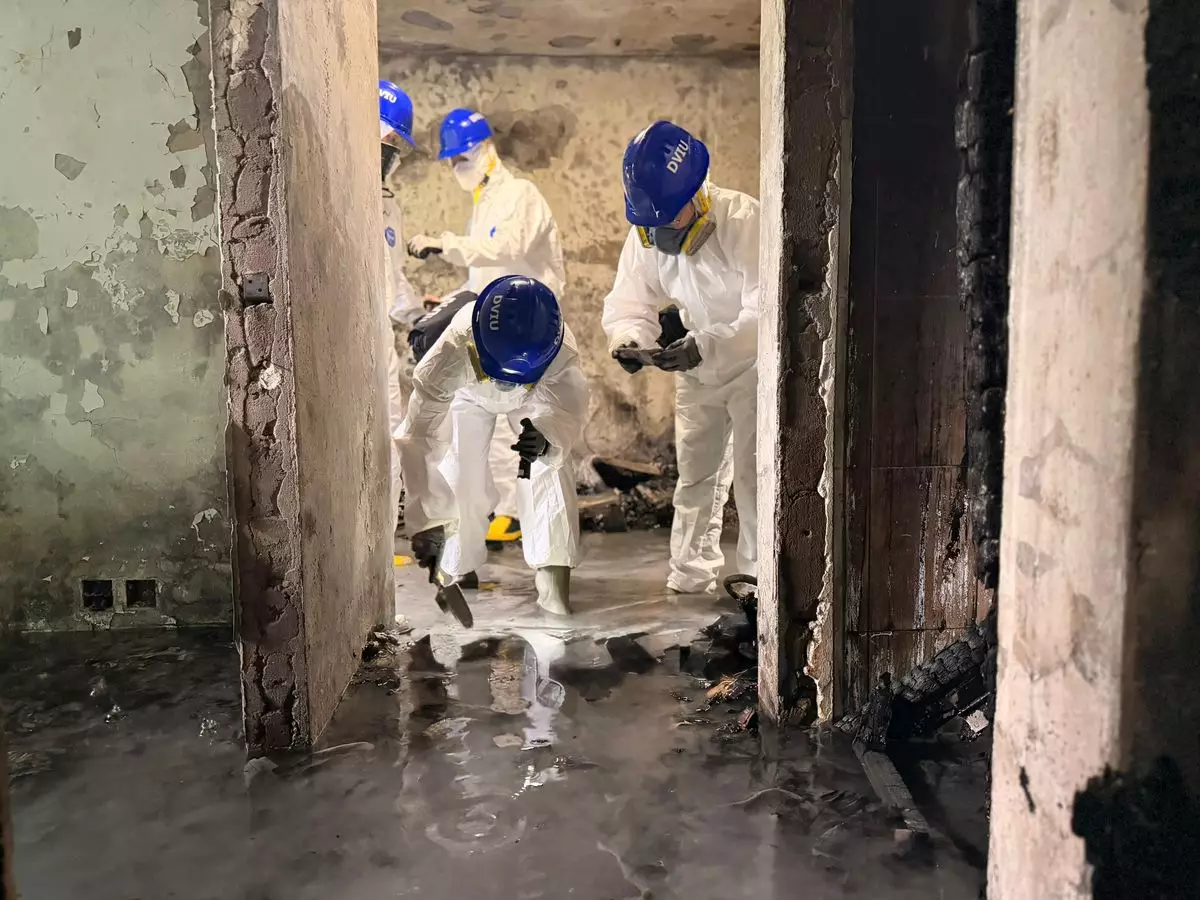 大埔宏福苑五級火,DVIU早前進入火災現場搜索。警方圖片