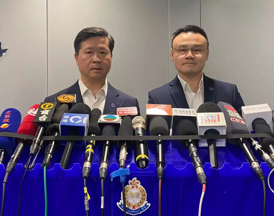 港島總區刑事部(行動)警司冼國明(左)及總區重案組第一隊總督察文智陽現向傳媒簡報案情。
