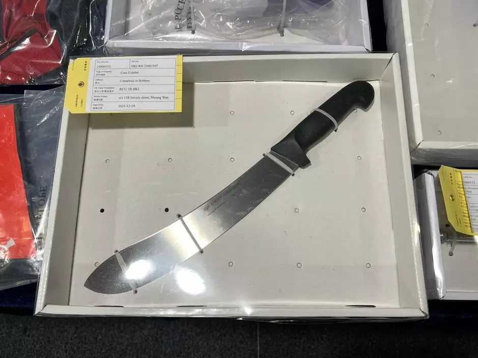 警方在接應的車輛裏找到一把相信是其中一名賊人所使用過的牛肉刀。