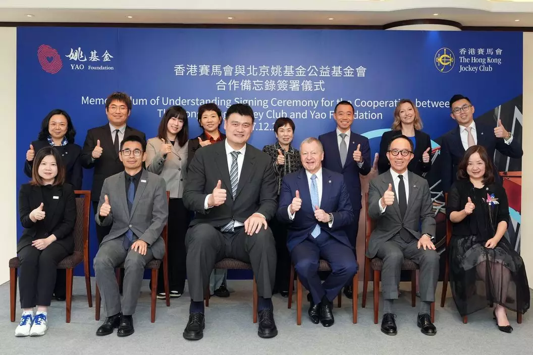 合作備忘錄簽署儀式於12月7日在馬會沙田會所舉行。姚基金理事長姚明及馬會行政總裁應家柏代表雙方簽署合作備忘錄。根據備忘錄,雙方將攜手探索合作項目及交流活動,加強推廣籃球運動及青年體育發展。