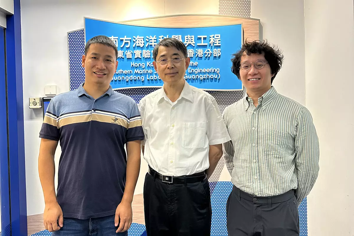由科大海洋科學系講座教授錢培元教授(中)、助理教授吳龍君教授(右)及博士後研究員佘加傑博士(左)領導的研究團隊推出全球首個深海組學數據庫,推動極端環境生物適應機制的全球研究及應用。