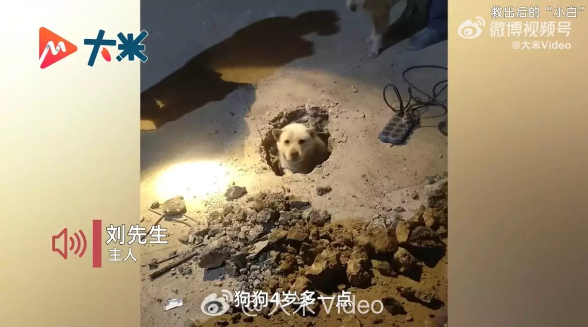 多名村民獲悉消息後自發到場協助救援,有村民動員挖掘機及打孔機,在狹窄路面上精準鑿開3個洞口,逐步定位被困位置,最終歷時約4小時將小白狗順利救出。參與救援的十多名村民來自不同工種,包括挖掘機師傅、維修工人等,所有人均未收取任何費用。小白狗被救出後渾身沾滿污泥,所幸精神狀況尚可,經檢查後並無大礙。