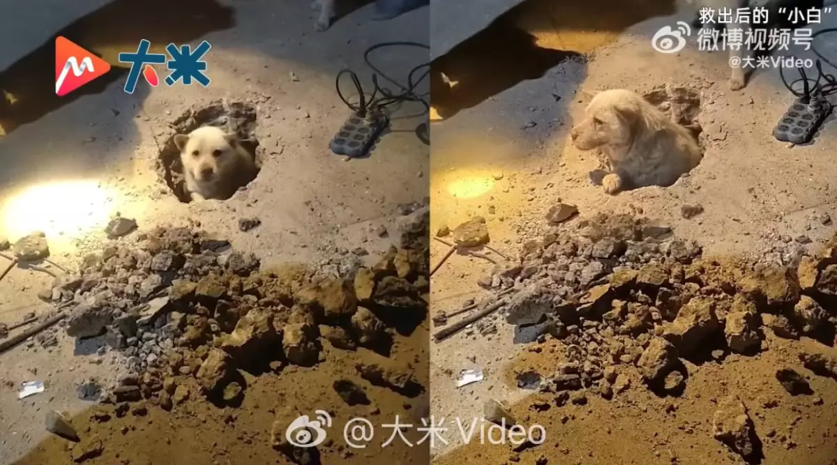 湖南一隻狗狗鑽入下水道受困逾20小時,獲數名熱心村民動用挖掘機破地,逾4小時終安全救出。