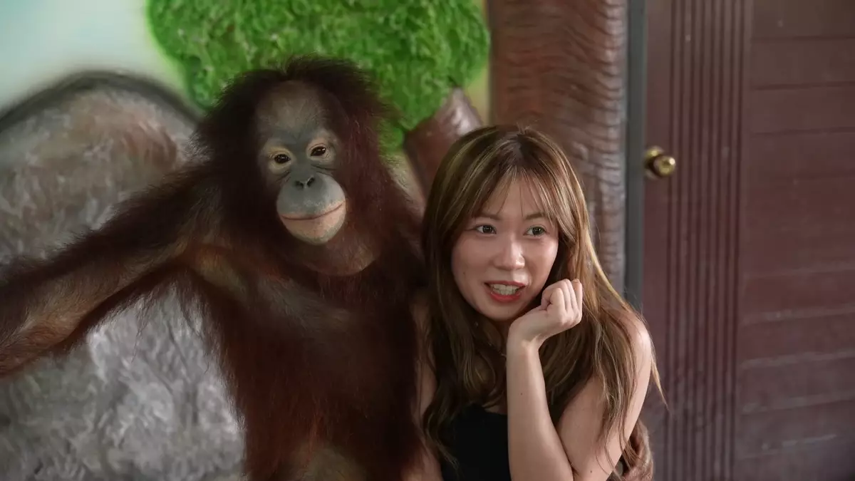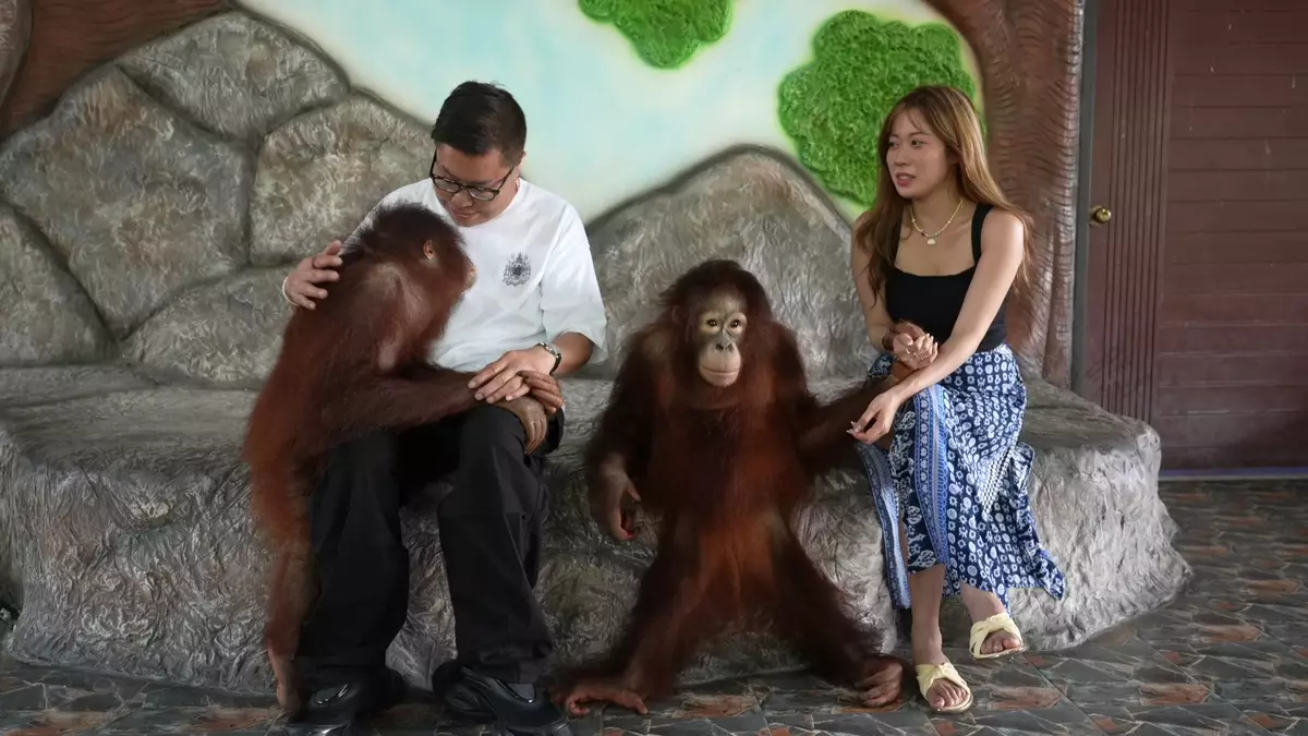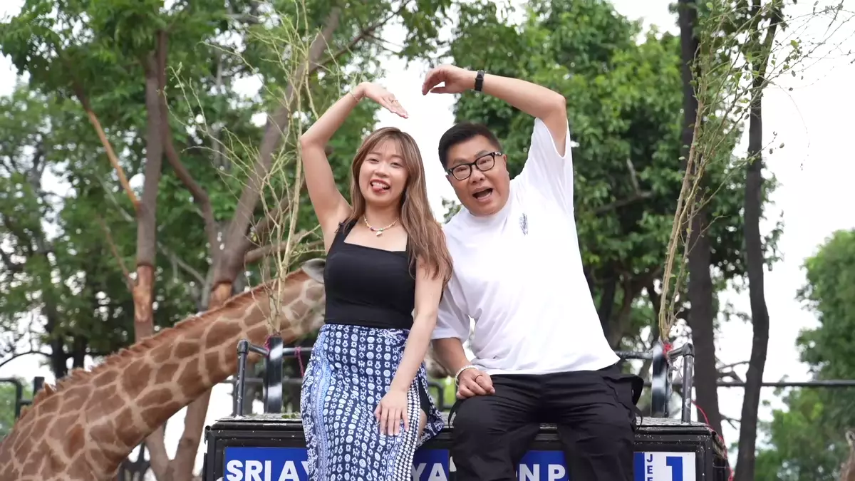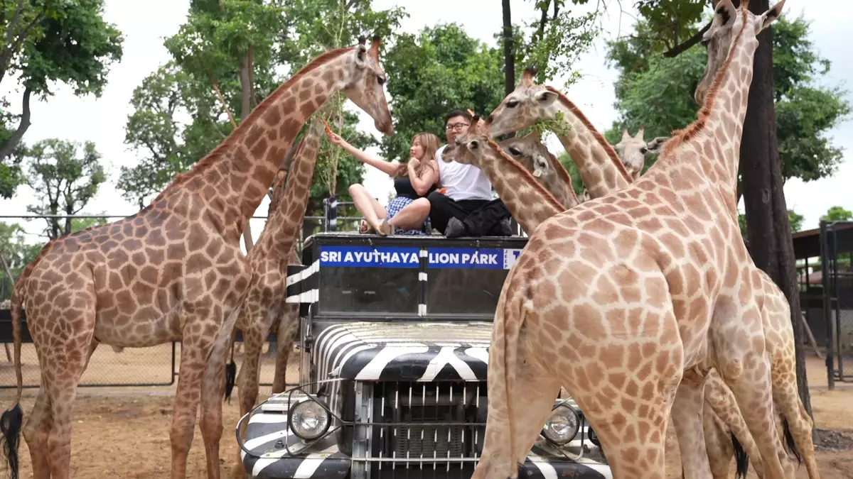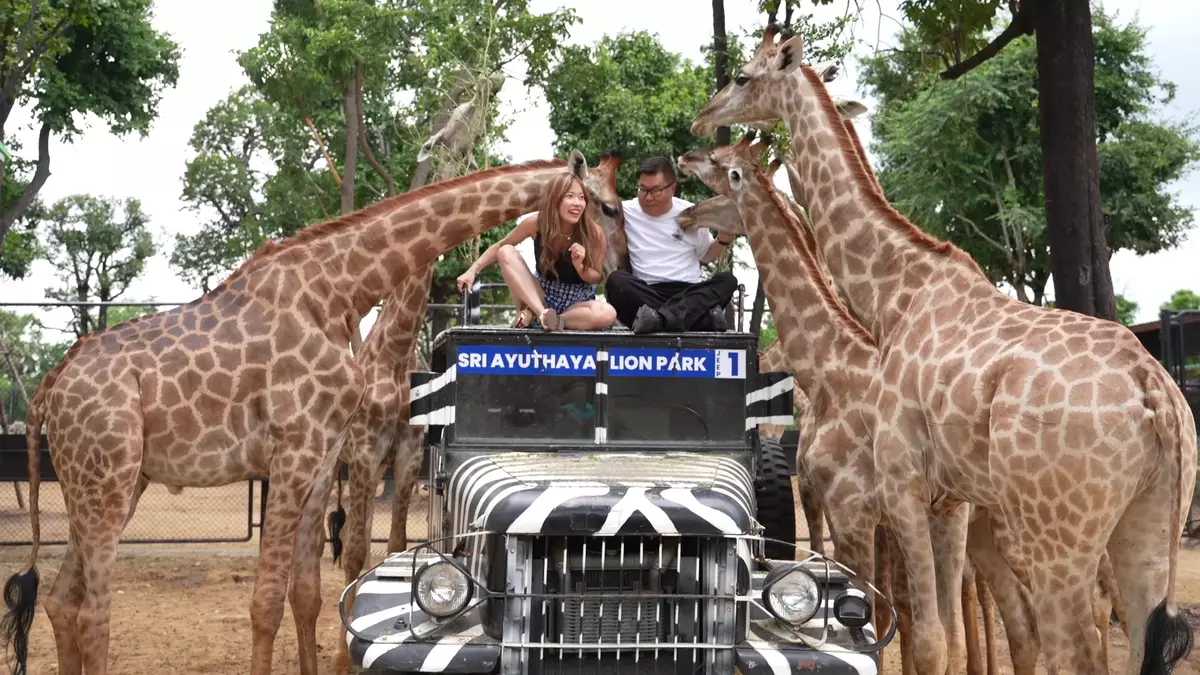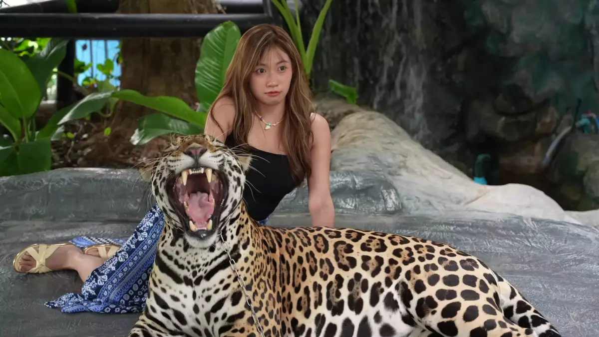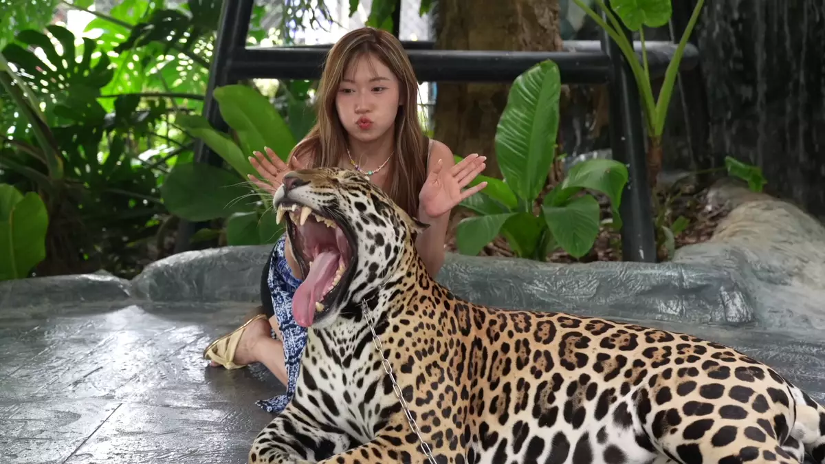 下一站,二人來到大城府的動物園參觀,園內提供近距離跟動物接觸,波波與一隻成年花豹合照,她邊撫摸花豹邊戰戰兢兢說︰「睇手機就睇得多呢個(豹打呵欠)表情符號,真嘅都係第一次,我驚講嘢咁大聲會嚇親佢。」