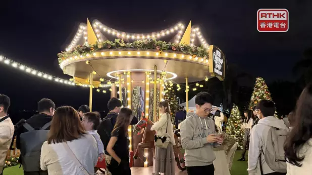 不少市民在平安夜外出慶祝,其中西九文化區的聖誕小鎮人頭湧湧,有市民帶同寵物打卡留念。有旅客表示會留港一星期,到不同地點感受節日氣氛。