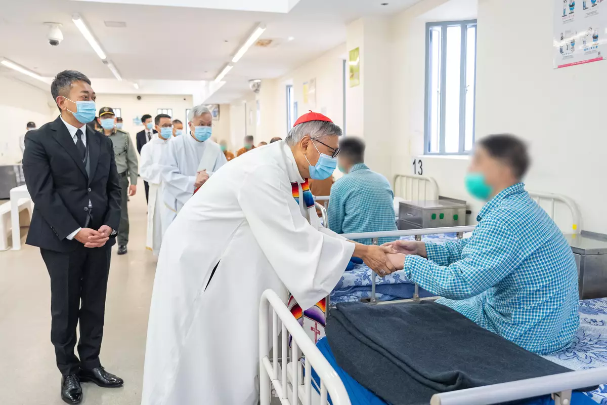 天主教香港教區主教周守仁樞機在懲教署副署長梁嘉倫陪同下,今日到赤柱監獄主持聖誕彌撒,為在囚人士分享信仰哲理及送上聖誕祝福。他又到監獄醫院探望患病的在囚人士,給予慰問與支持。