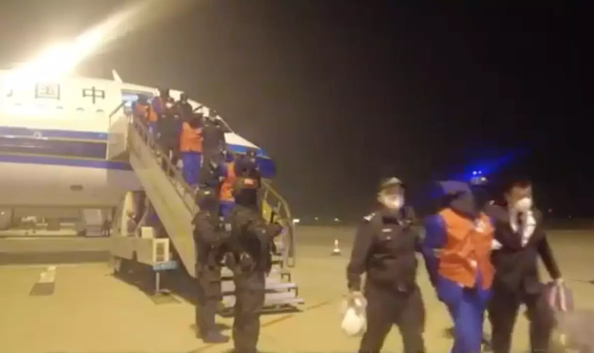 被中國公安機關通緝的跨境賭博「十大逃犯」之一,緬甸妙瓦底「亞太新城」(KK園區) 賭詐犯罪集團主犯佘智江,由泰國引渡回國。載著佘智江的客機昨晚降落南京祿口國際機場,佘智江雙手鎖上手扣,由警員押解落機。