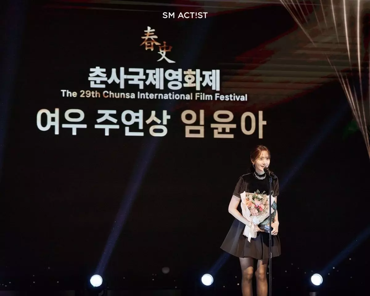 少女時代成員允兒則以奇幻懸疑喜劇《我的鄰居是惡魔》中飾演白天溫柔經營麵包店、凌晨化身惡魔的雙重角色「鄭善智」,展現突破性轉型演技,摘下影后桂冠。允兒僅靠聲調、眼神與表情,將溫柔與危險的對比詮釋得淋漓盡致,獲評「前所未見的新面貌」。允兒登台致辭時說:「每部作品對我都彌足珍貴,而這部電影特別充滿感情與意義,讓我再次迎接新挑戰。透過它,我學會以興奮與喜悅的心情面對變化,而非恐懼。非常感謝製作團隊、同組演員、觀眾與粉絲。今後我也會一步一腳印,踏實前行。」今年允兒憑該片及高收視劇集,接連斬獲多項大獎,證明跨界影視的強大影響力。