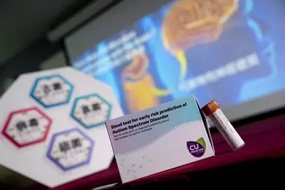 中大醫學院副院長(研究)兼裘槎醫學科學教授黃秀娟表示,透過量度少量糞便樣的腸道微生物群特徵,包括細菌、古菌、真菌、病毒、微生物基因及代謝途徑等,再使用經驗證的人工智能模型,便可計算出自閉症風險評分 。有關專利技術已於2024年獲美國食品藥物管理局「突破性設備認證」,認可為全球創新且具潛力成為未來的自閉症輔助診斷工具。