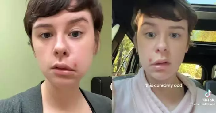 女子誤擠「死亡三角區」痘痘導致半邊臉下垂癱瘓需住院。影片截圖