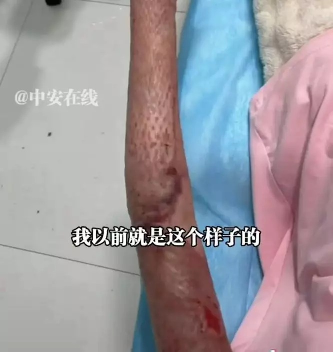 女子將手機放枕邊充電突自燃爆炸,導致臉部及身體被燙傷留疤。影片截圖