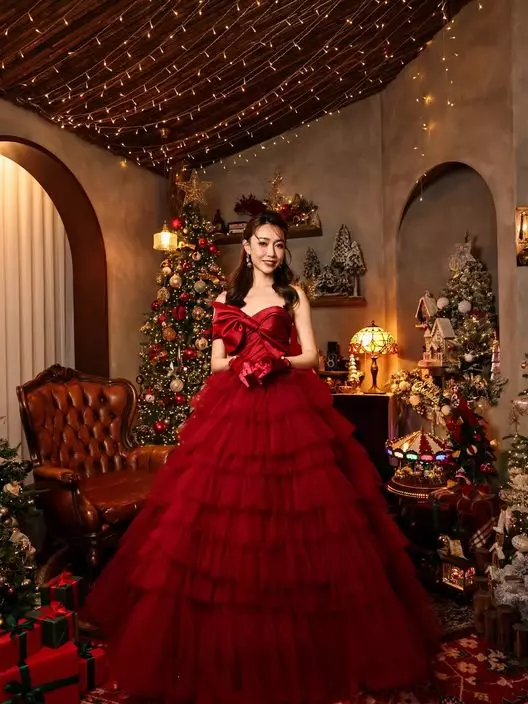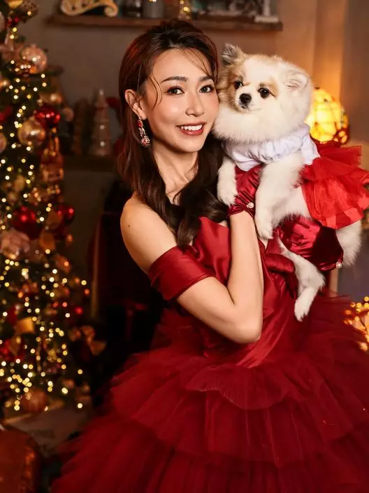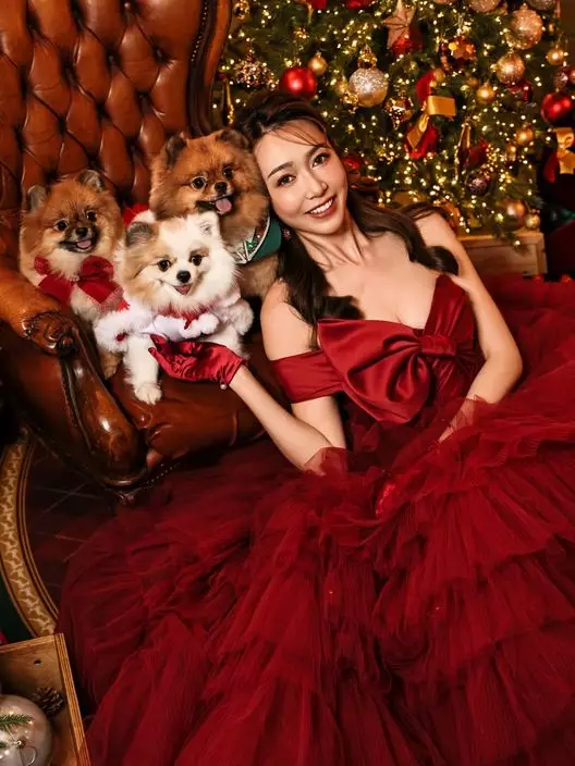 聖誕佳節,港姐冠軍黃嘉雯(Carmaney)在社交平台大派福利,上載一系列節日靚相。她身穿紅色低胸晚裝,胸前巨型蝴蝶結設計宛若「人肉聖誕禮物」,火辣又應節。隨後她與三隻愛犬溫馨合影,盡顯愛心。