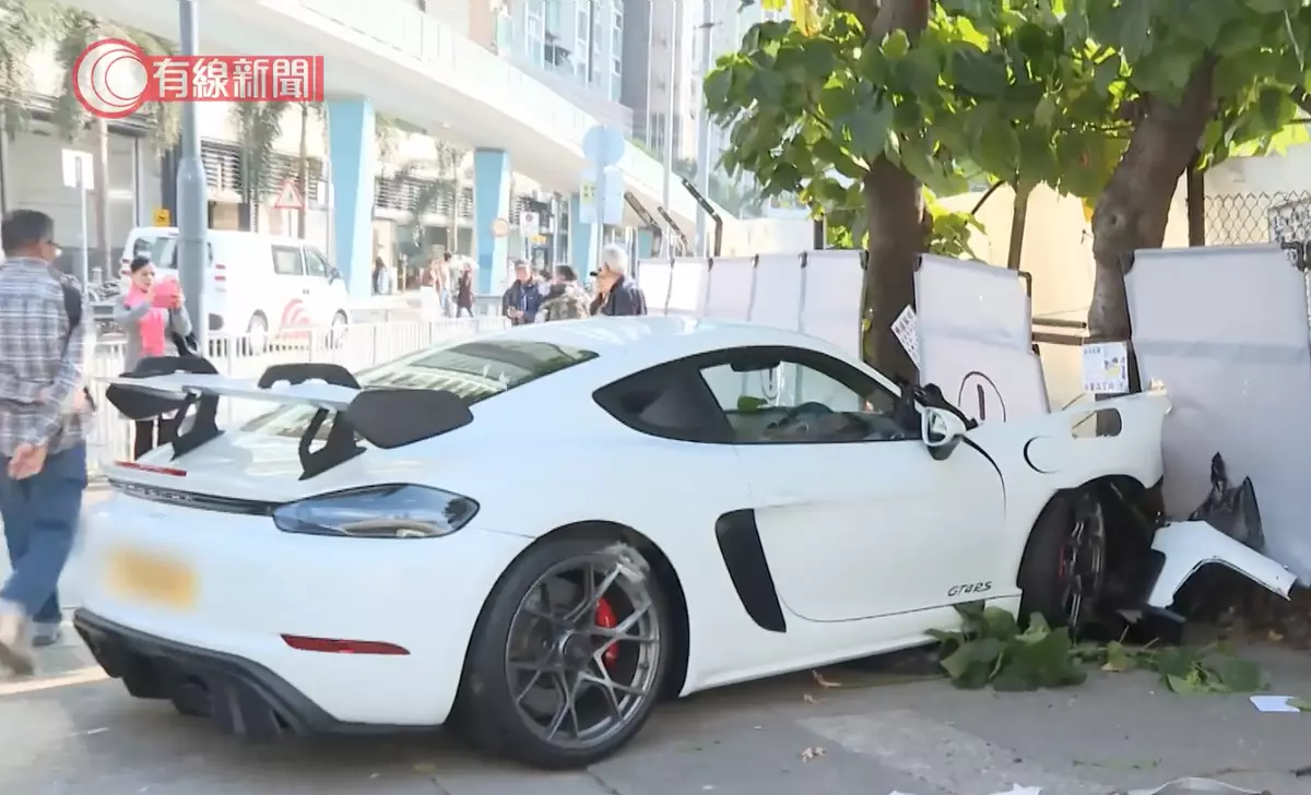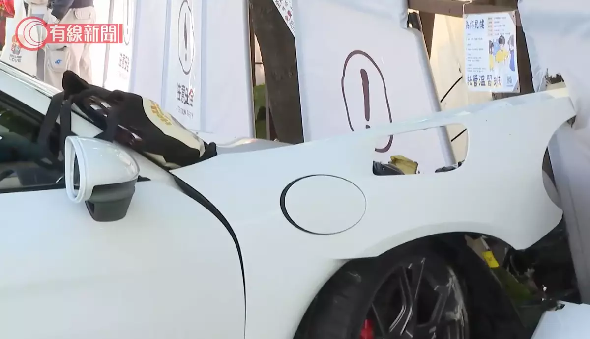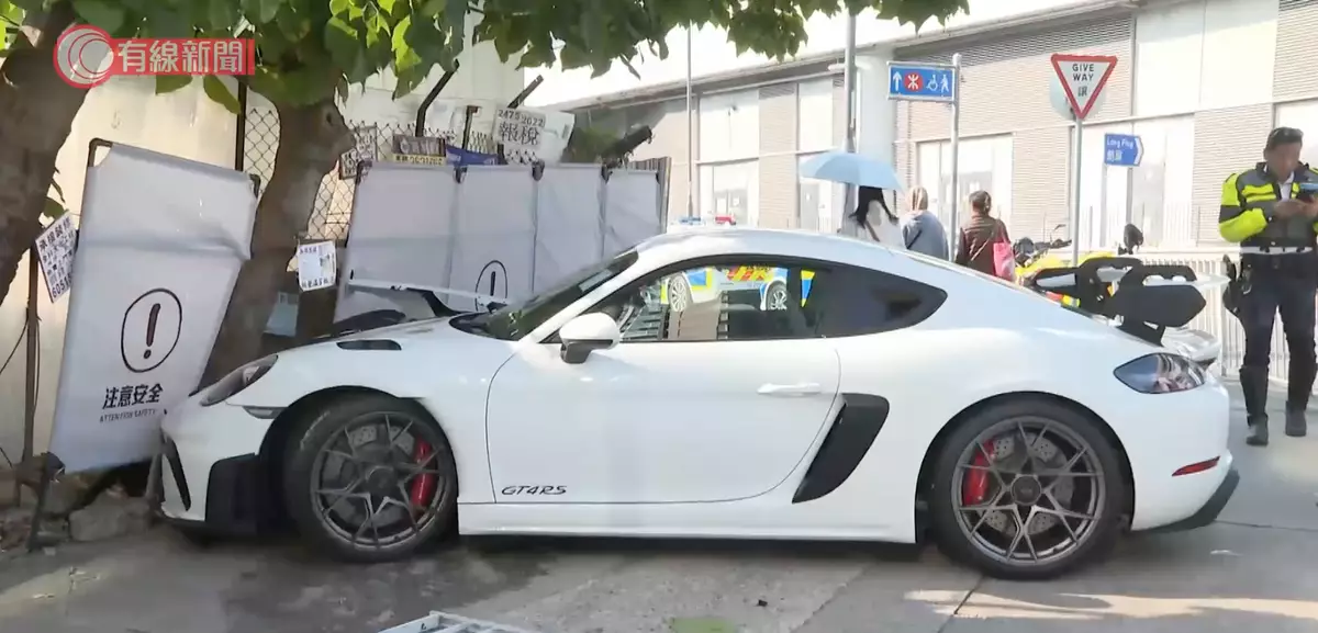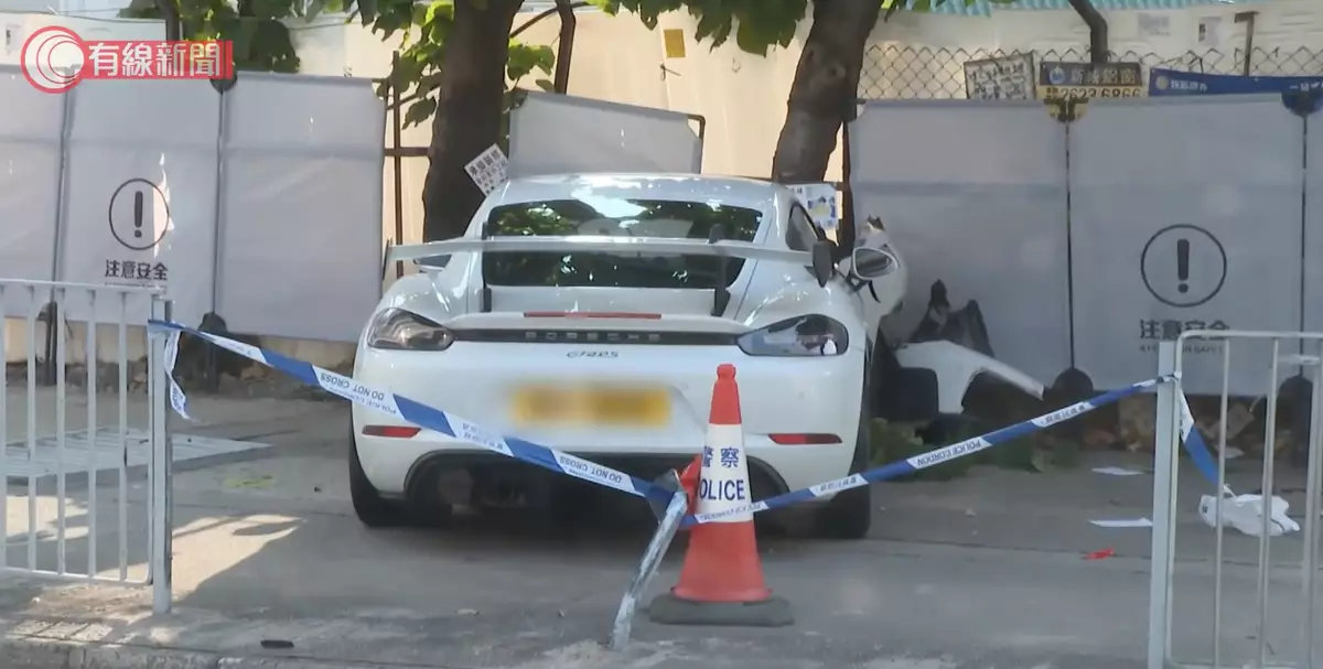 元朗私家車鏟上行人路。有線新聞畫面截圖