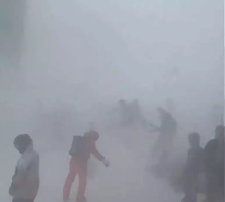 一段拍攝於北海道著名滑雪勝地二世古的影片可見,滑雪遊客在山上突遭猛烈暴風雪侵襲,強風夾雜大雪,將滑雪板吹離原位,導致不少人難以站立,甚至被迫伏在地上,僅能艱難地匍匐前行,現場情況相當驚險。