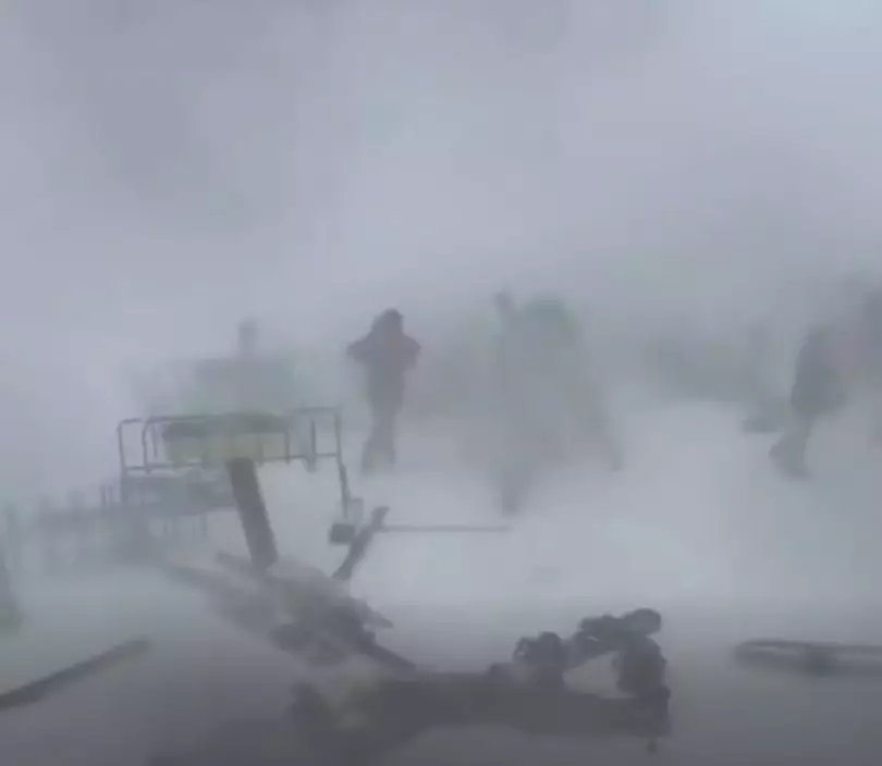 滑雪場遭遇強烈暴風雪侵襲 ,遊客難站立被迫匍匐前行。X平台圖片