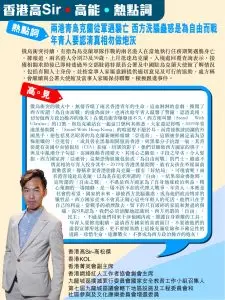 高SIR:俄烏衝突的戰火中,無情吞噬了兩名香港青年的生命,這血淋淋的悲劇,撕開了西方所謂「為自由而戰」的虛偽面紗,也再次給年青人敲響了警鐘:認清真相,切勿做西方政治操弄的炮灰!在俄烏衝突爆發後不久,西方便叫響「Stand With Ukraine」的口號,與烏克蘭站在一起這口號何其熟悉。大家還記得嗎,2019年香港黑暴期間,「Stand With Hong Kong」的喧囂聲不絕於耳,而背後推波助瀾的外國黑手,便包括臭名昭著的烏克蘭新納粹組織「亞速營」。這個被多國定義為恐怖組織的「亞速營」,成員曾在黑暴期間竄訪香港,與黑暴分子沆瀣一氣,其背後還有美國中央情報局(CIA)扶植、培訓的影子。他們甘願做西方國家的棋子,與反中亂港分子勾結,妄圖推動香港變天,其用心之險惡,手段之卑劣,令人髮指。西方國家將「亞速營」這類恐怖組織包裝成「為自由而戰」的鬥士,蠱惑不明真相的年青人投身其中。2019年香港黑暴期間,就有女孩在外媒面前激動落淚,聲稱希望香港能像烏克蘭一樣有「好結局」。可現實呢?兩名港青遠赴烏克蘭,以為是在追求所謂的「自由」,結果卻命喪他鄉。這所謂的「自由之戰」,不過是西方國家為了自身地緣政治利益,精心策劃的一場鬧劇,是一場不折不扣的代理人戰爭。年青人,本應是社會的希望、國家的未來,卻被西方洗腦蠱惑,成為他們政治博弈的犧牲品。西方國家從來不會真正關心這些年輕人的死活,他們只在乎自己的利益。當戰爭的硝煙散去,留下的只有破碎的家庭和無盡的傷痛。高SIR認為,我們必須清醒地認識到,西方所謂的「自由」「民主」,不過是他們用來干涉他國內政、維護自身霸權的工具。年青人要擦亮眼睛,認清西方國家的真實面目,不要被他們的虛假宣傳所迷惑,更不要輕易踏上這條充滿危險和不確定性的道路。珍惜生命,遠離戰火,不要成為西方政治操弄的炮灰!