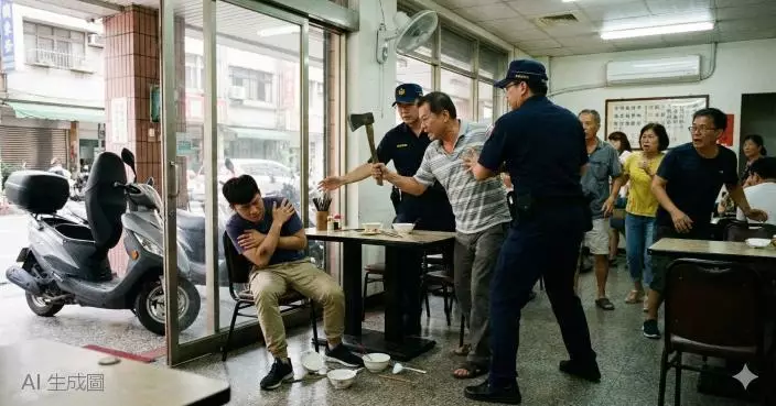 新北中和餐廳座位爭執引發54歲男子持斧攻擊38歲顧客,致其肩臂輕傷。AI生成示意圖,非當事人