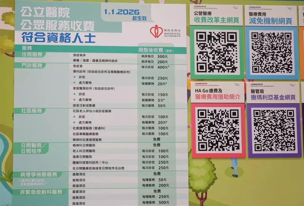 公立醫院將於2026年1月1日進行新收費,專科門診藥費改為每項藥物、每4星期收費20元,家庭醫學門診為5元。醫管局已動員逾1000名服務大使、專隊職員及義工等,派駐各院門診、繳費處及藥房等協助市民適應新收費。對網傳收費改革後,病人需每4星期取藥一次,局方澄清,4星期僅為藥費的計算單位,非強制病人每4星期取藥一次,強調每次取藥量跟以往無分別。