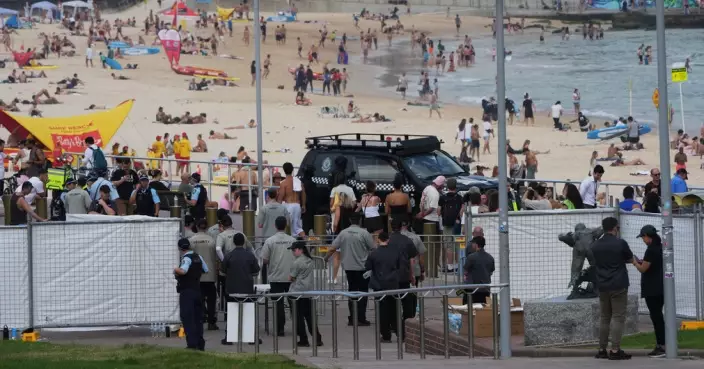 悉尼邦迪海灘在事發後加強保安。AP圖片