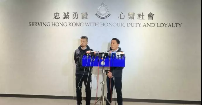 東九龍總區刑事總部署理高級警司黃奕隆及重案組第二隊總督察蘇志兵現向傳媒簡報案情。警察FB圖片