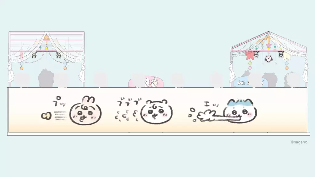 以 Chiikawa Baby 漫畫故事插圖打造而成的「角色合照牆」,輕鬆將故事完美呈現出來,讓大家全方位與角色合照。