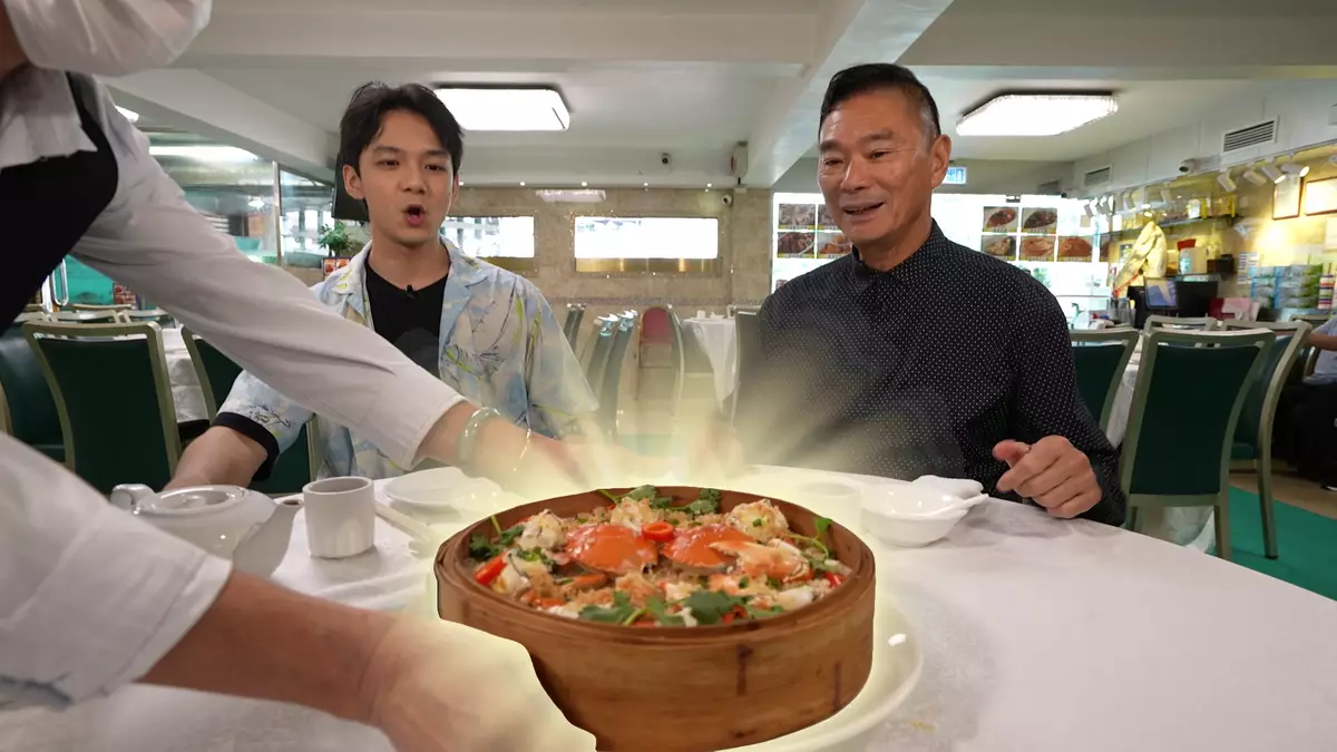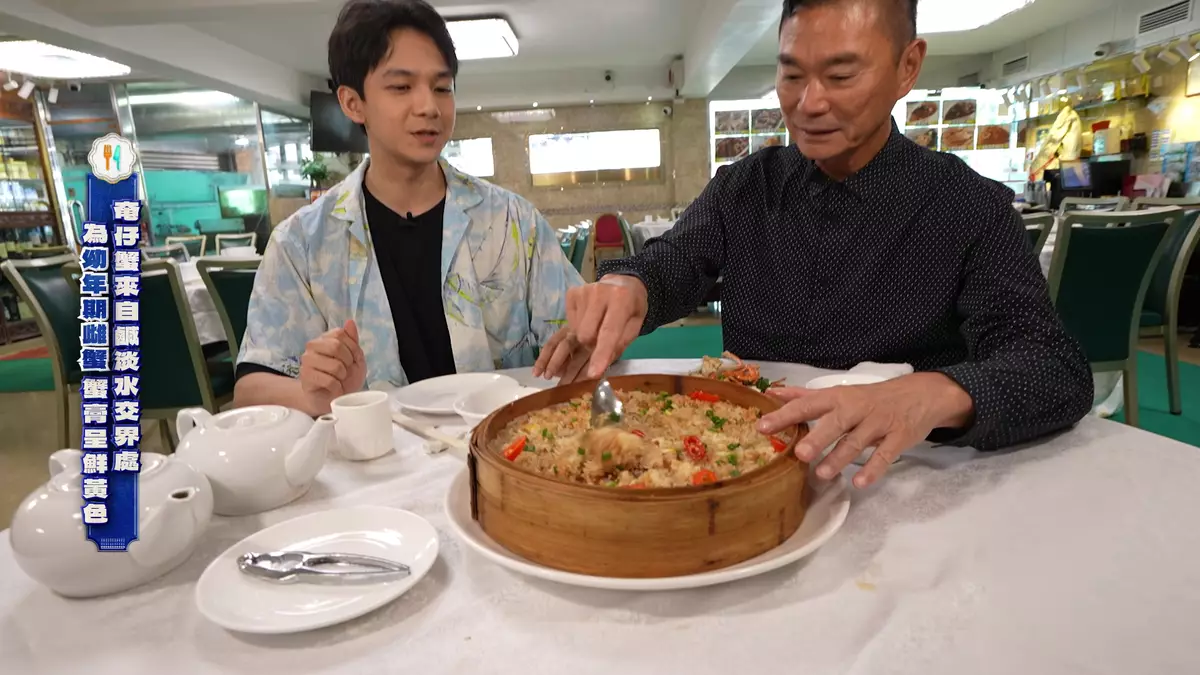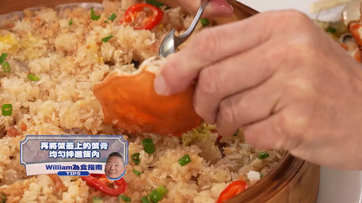 鄧達智教食奄仔蟹糯米飯正宗食法。
