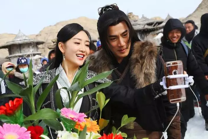 劉愷威與王鷗著戲服自拍(網上圖片)