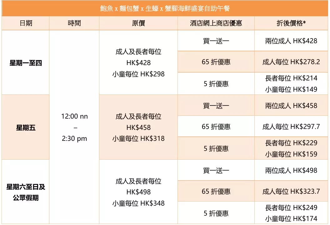 鮑魚 x 麵包蟹 x 生蠔 x 蟹腳海鮮盛宴自助午餐