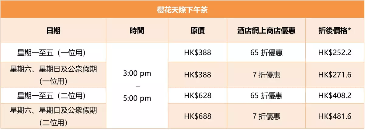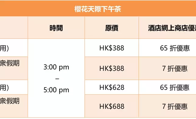 櫻花天際下午茶將於2026年1月1日至3月31日期間推出,提供精緻的鹹食和甜點選擇。鹹食包括煙三文魚卷、蟹肉鵪鶉蛋撻及鴨肝撻。甜點方面,櫻花奶凍啫喱、士多啤梨杏仁撻及綠茶紅豆慕絲蛋糕等將令人無法。下午茶還包括即磨咖啡或茶,並贈送一杯氣泡酒。