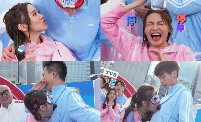 Matthew淋到Carman變「落湯雞」,而明顯Carman係盡量忍住道氣。