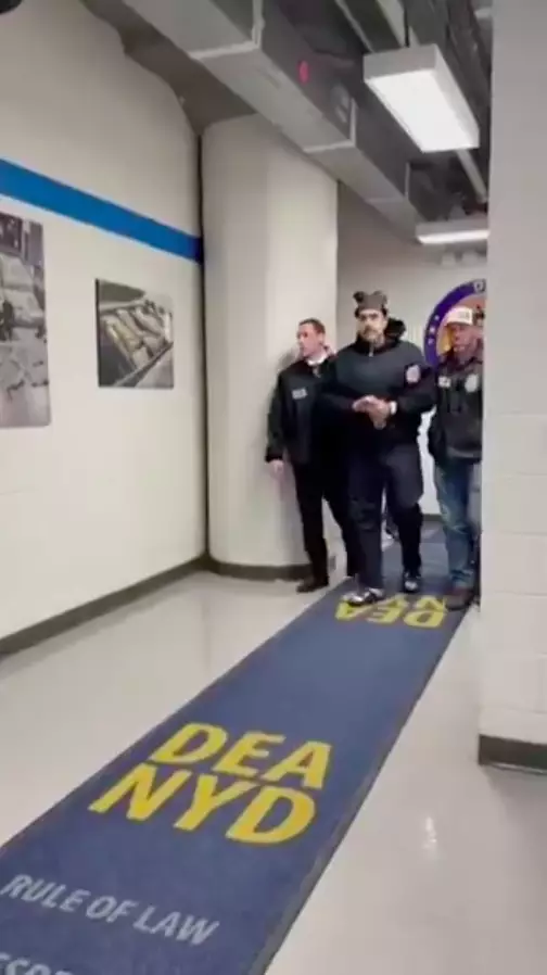 據美國白宮官方賬號發布了一段視頻,記錄了相信是馬杜羅被押送抵達美國緝毒署(DEA)的畫面。視頻顯示,馬杜羅身穿黑色連帽運動衫,走在一條鋪着藍色地毯的走廊裏,地毯上標有「DEA NYD」字樣,並在旁人提醒後說道:「晚上好!新年快樂!」。