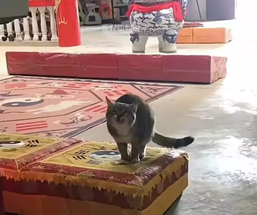 據悉,「師兄」性情獨特,最為人津津樂道的便是牠特別愛「告狀」。每當在寺廟內覺得受了委屈,便會跑到神像前不停喵喵叫,彷彿在抱怨沒有人給牠吃小魚乾。久而久之,「師兄」更在寺廟內找到一張拜佛用的坐墊,視之為自己的「專屬告狀寶座」。每當有人靠近,牠便立刻衝上前,用一副「這是我的位置」的姿態提醒旁人保持距離。然而,只要有人靜靜坐在一旁陪伴,牠又會慢慢靠近,露出撒嬌的一面。