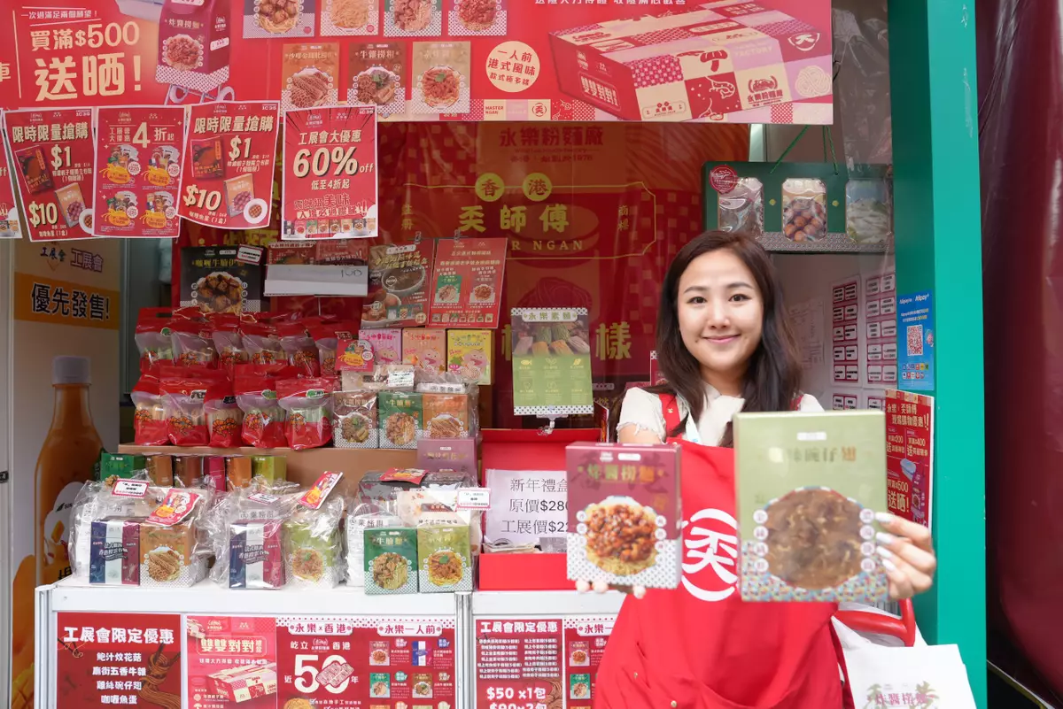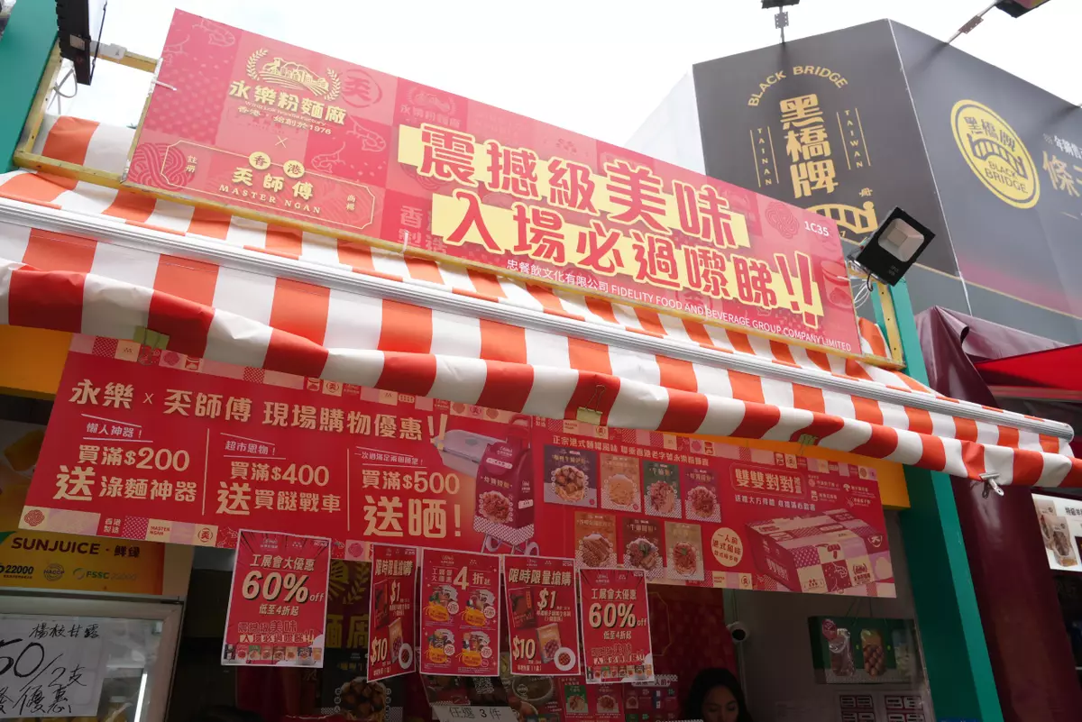「奀師傅」在本次第59屆工展會上與永樂粉面廠合作設置攤位,吸引眾多消費者前來購買。巴士的報記者攝