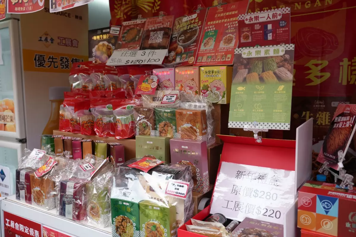 「奀師傅」品牌與永樂粉面廠在今次工展會上合作帶來各式各樣產品與禮盒。巴士的報記者攝