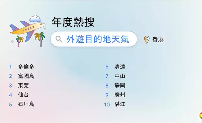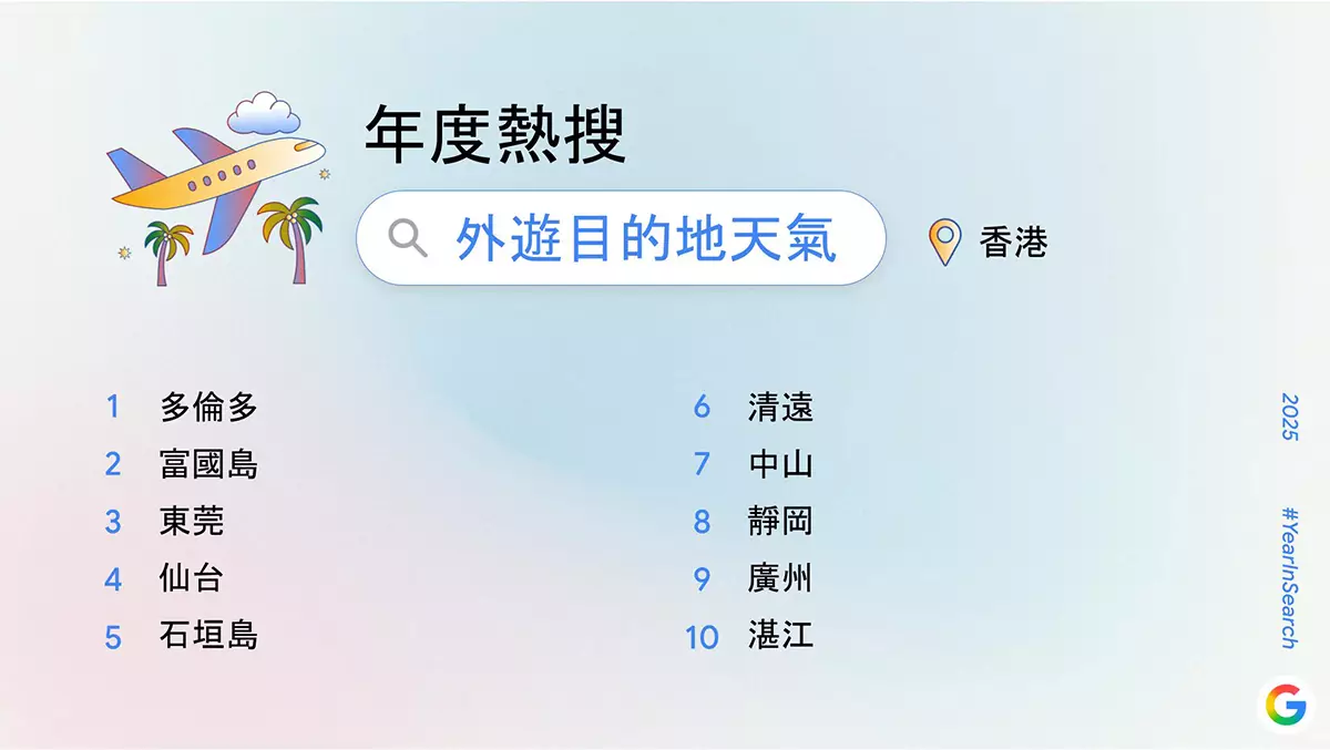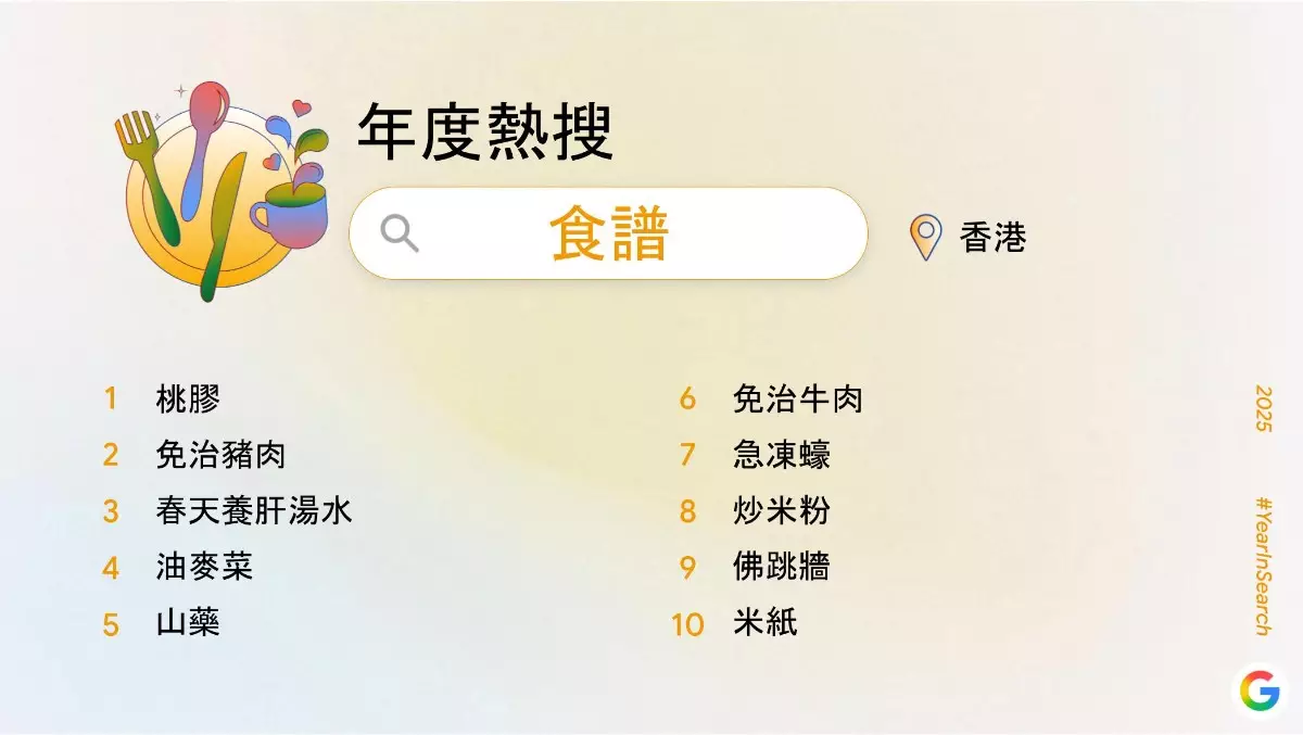 Google 香港 2025 年度熱搜食譜 Google 香港 2025 年度熱搜外遊目的地天氣